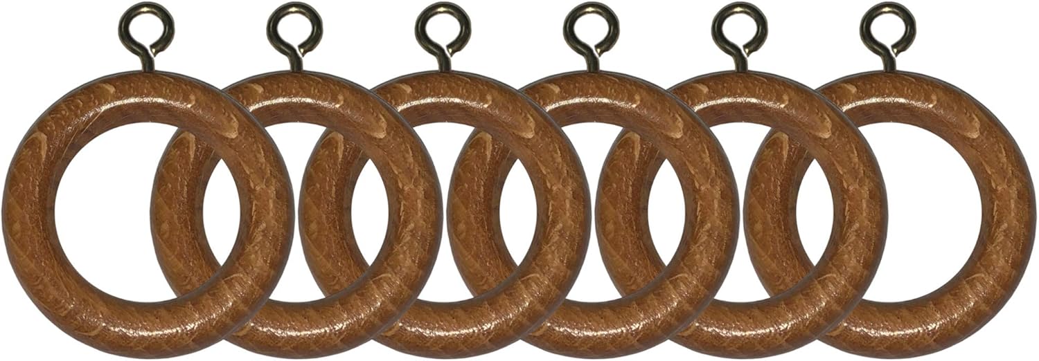 Wooden Curtain Pole Rings Pack of 6 Teak Effect