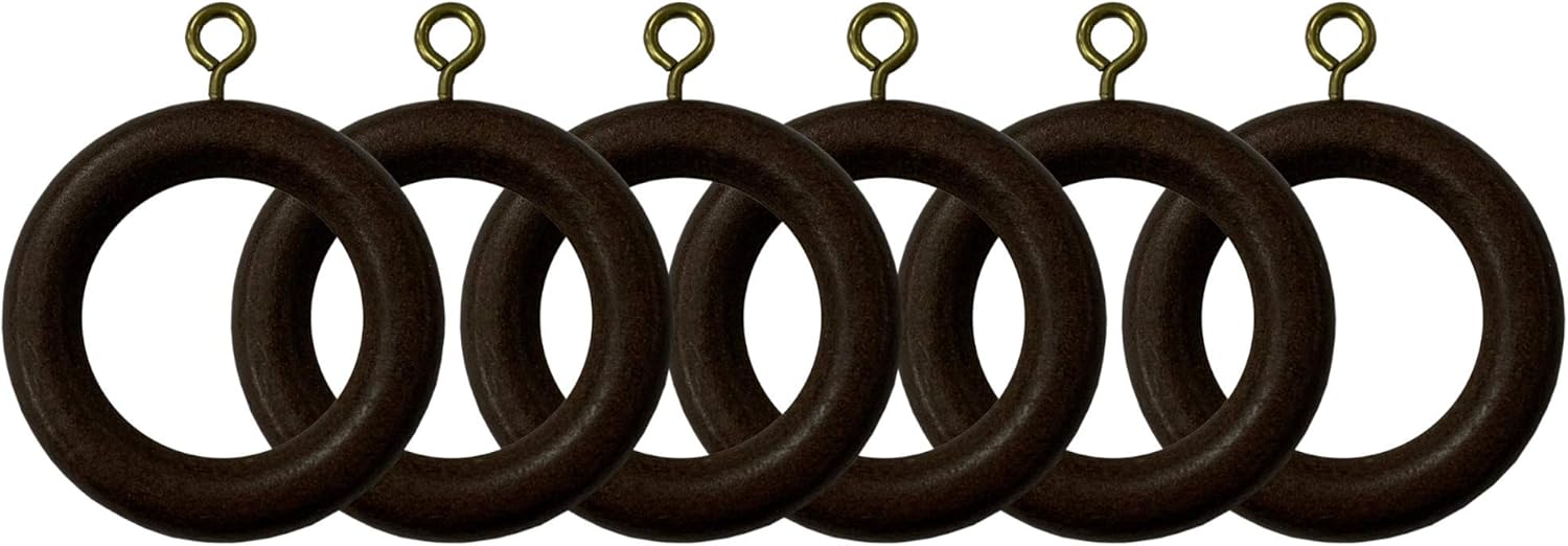 Wooden Curtain Pole Rings Pack of 6 Walnut Effect