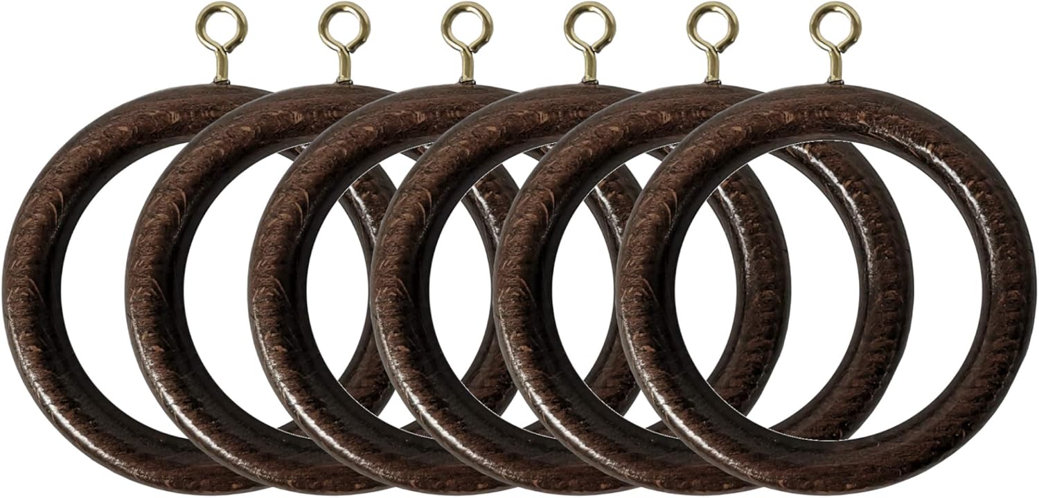 Wooden Curtain Pole Rings Pack of 6 Walnut Effect