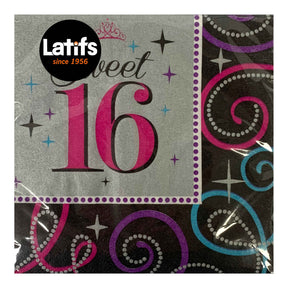 • 16 "SWEET 16" Celebration Napkins