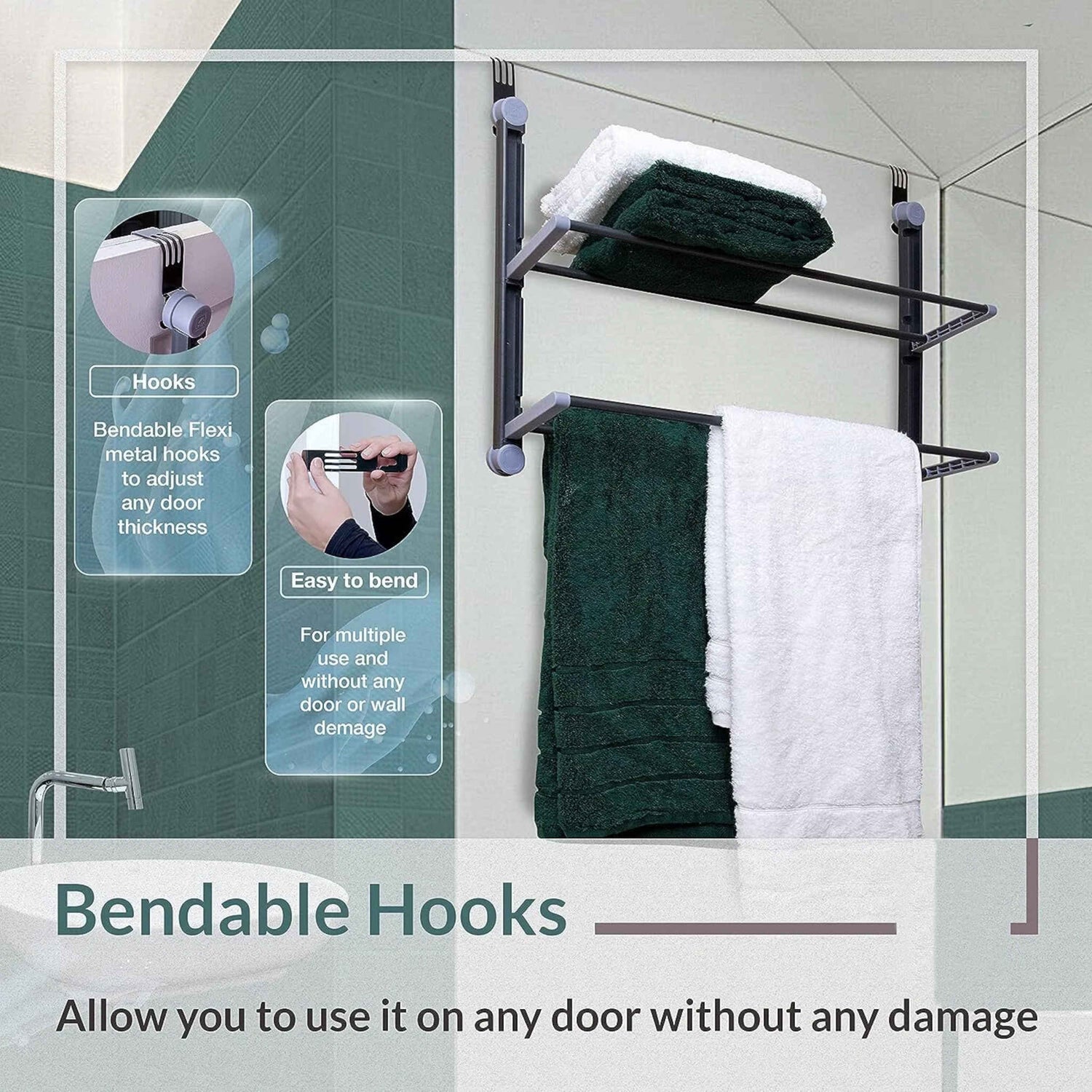 2 Tier Over The Door Bathroom Organiser Grey