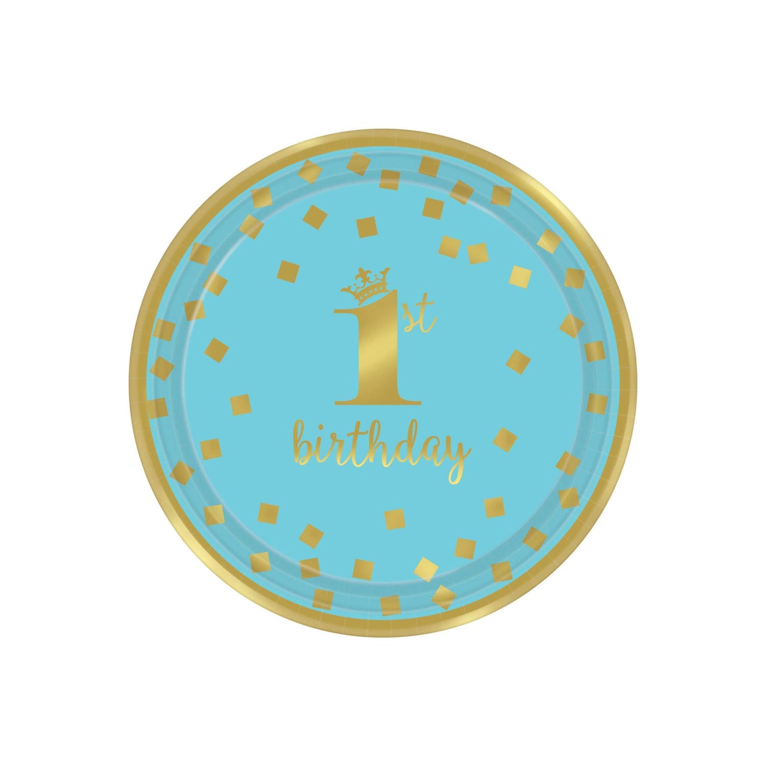 Gold 1st Birthday Boy Round Paper Plates 8 Pack